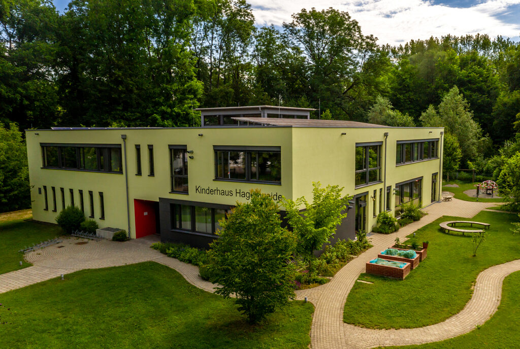Unser Kinderhaus Hagenweide hat Platz für zwei Krippengruppen, drei Kindergartengruppen und eine Hortgruppe und ist somit der größte Kindergarten der Stadt. Hier können sich Kinder im Alter von 1 bis 12 Jahren in unserem großzügigen Gebäude und dem großen Außengelände bewegen. Platz zur Entfaltung bieten im teiloffenen Konzept auch die Holzwerkstatt, der Kreativraum, die Turnhalle und der Intensivraum. In den schön gestalteten Räumen erleben die Kinder alltägliche Sachen wie Musik, Bewegung oder Ernährung auf eine ganz besondere Art und Weise. Ebenfalls untergebracht ist hier der Familienstützpunkt. In angenehmer Atmosphäre erhalten hier Günzburger schnell und unkompliziert Hilfe bei Problemen im Familienalltag.